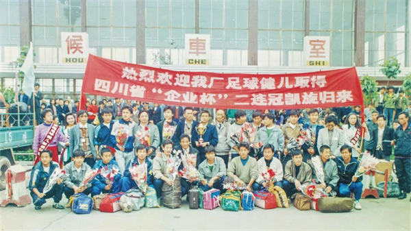 德阳的足球超越了单纯的体育娱乐,让一群工业移民在陌生土地上找到了新的归属感。来自各地的建设者通过足球打破隔阂,在奔跑与呐喊中,锻造出认同感和“德阳人”的身份。1991年,二重厂男子足球队卫冕四川省“企业杯”冠军,凯旋时,德阳老火车站被欢呼的人群挤得水泄不通。那一刻,足球深深嵌入了德阳城市发展的年轮。“雄起”的口号,也在这片工业热土上完成了最朴素的淬炼。