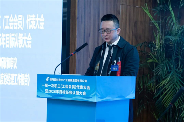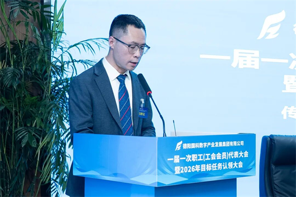 春潮涌动催奋进,实干笃行开新局。3月14日,德阳国科数字产业发展集团有限公司(以下简称“集团”)一届一次职工(工会会员)代表大会暨2026年目标任务认领大会胜利召开。德阳市数据局党组书记、局长易伟,德阳发展集团工会副主席周亚飞到会指导;集团党总支书记、董事长杨建强出席会议并讲话,集团领导班子成员、职工代表、列席代表共70余人齐聚一堂,共商集团高质量发展大计,共绘转型跨越新蓝图。