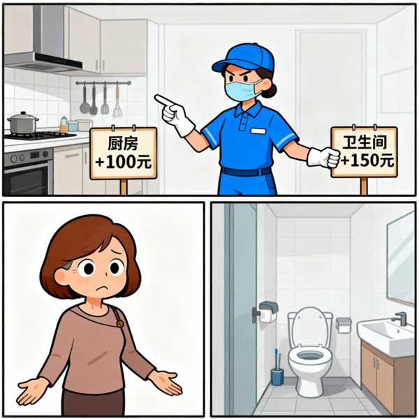 不良保洁员通过使用低成本清洁用品赚取差价,或借“材料费”名义进行二次收费。