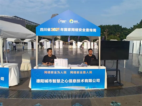 9月15日,四川省2025年国家网络安全宣传周在德阳文庙广场正式启动。本届宣传周以“网络安全为人民·网络安全靠人民——以高水平安全守护高质量发展”为主题。作为德阳本地企业代表,德阳城市智慧之心信息技术有限公司(简称:智慧之心)受邀亮相开幕式现场布展,与市民零距离互动。