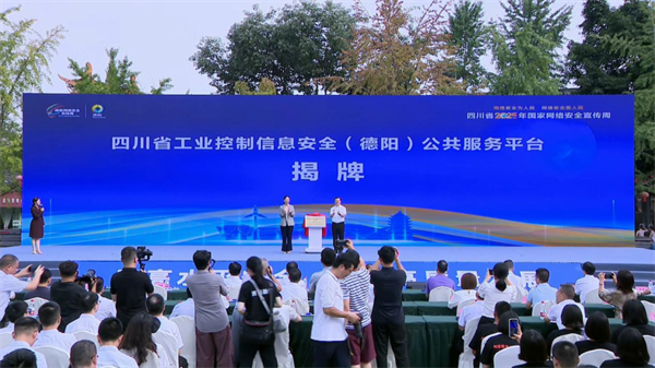 在开幕式的重要环节中,四川省经济和信息化厅二级巡视员李文莉与四川省委网信办副主任宁方伟共同为“四川省工业控制信息安全(德阳)公共服务平台”揭牌。