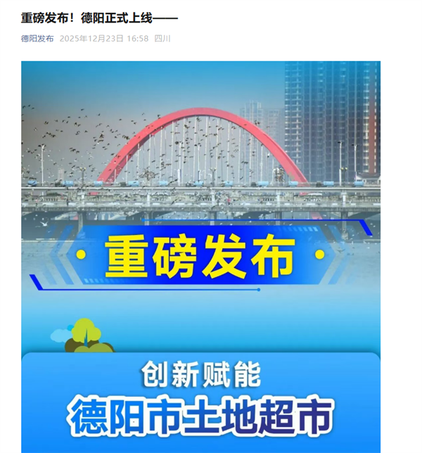 “德阳土地超市”正式上线,这一创新平台将全市一级市场存量地块与二级市场转让地块全面数字化上架,标志着德阳在土地要素市场化配置改革中迈出了关键一步。