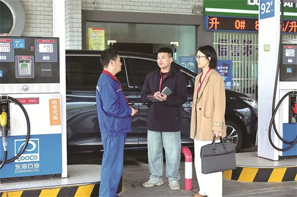 浙江省杭州市临平区纪委监委聚焦“车轮上的不正之风”,对公车私用、私车公养等节假日易发多发问题加大监督检查力度,通过调取公车行车轨迹、比对公务卡加油记录等方式开展监督检查。图为近日,该区纪检监察干部在某加油站了解情况。梅萌萌 摄