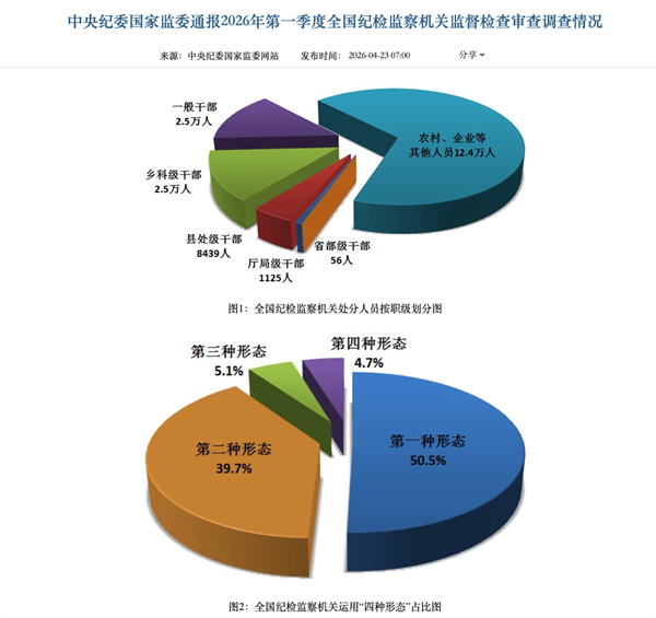 本周四,中央纪委国家监委通报2026年第一季度全国纪检监察机关监督检查审查调查情况,晒出正风肃纪反腐“成绩单”——第一季度,立案24.5万件,其中立案省部级干部30人、厅局级干部1267人;处分省部级干部56人,厅局级干部1125人;运用“四种形态”批评教育和处理37.6万人次;立案行贿人员9066人……数据直观展现出我们党正风肃纪反腐的坚定决心,释放出全面从严治党向纵深推进的信号。今年是“十五五”开局之年,必须持之以恒推进全面从严治党,持续深化正风肃纪反腐,加大一体推进不敢腐、不能腐、不想腐力度,更加有力有效铲除腐败滋生的土壤和条件,为经济社会高质量发展清障护航。