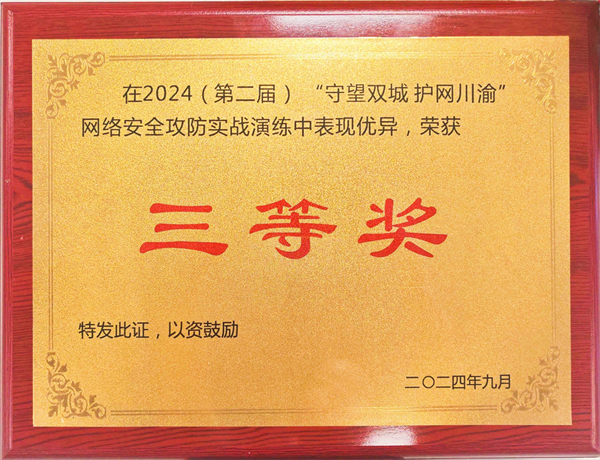 在刚刚落下帷幕的2024年度(第二届)“守望双城 护网川渝”网络安全攻防实战演练中,四川奇安旌服科技有限公司(以下简称“奇安旌服”)凭借卓越的技术实力与团队协作,从众多参赛者中脱颖而出,荣获三等奖!这是对我们技术团队不懈努力的高度肯定,更是对奇安旌服在网络安全领域深耕细作、勇于创新的有力证明!