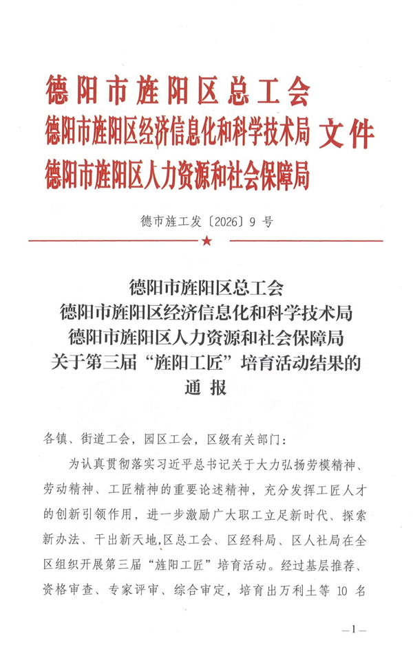 匠心如炬·奇安旌服公司易凡同志成功入选第三届“旌阳工匠”提名