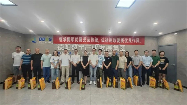 为纪念延安双拥活动80周年,进一步弘扬拥军优属、拥政爱民的光荣传统,在“八一”建军节来临之际,7月27日上午,德阳国科数字产业发展集团有限公司组织开展了“八一”慰问活动。集团党总支书记张强、董事长彭宇向集团退役军人及现役军属送上了节日祝福。
