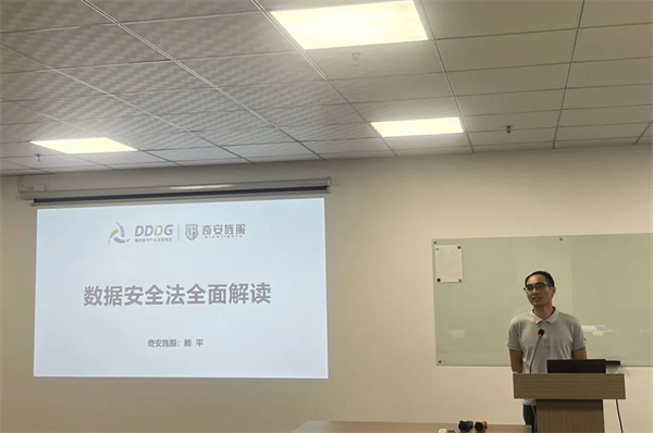 奇安旌服公司总经理赖平为参训人员介绍了《中华人民共和国数据安全法》,对法律重要条文进行了重点讲解。通过讲解,大家对数据安全有了基本的认知,加强了相关法律的理解和应用。