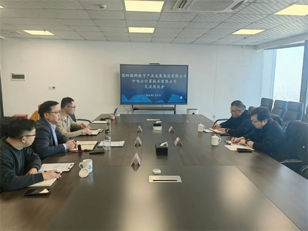 1月8日,德阳国科数字产业发展集团有限公司(简称 “数字发展集团”)与中电云计算技术有限公司(简称“中电云”)举行合作座谈会。中电云高级副总裁郭炜、四川公司总经理李洋,数字发展集团党总支书记、董事长杨建强,党总支委员、副总经理张强,德阳数字城市科技有限公司总经理罗春杰出席会议。