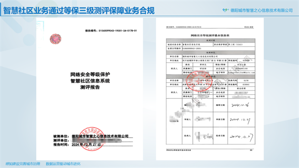 公司始终把网络安全作为智慧小区的核心保障。产品设计与实施严格遵循《网络安全等级保护基本要求》,并已通过国家网络安全等级保护2.0三级测评。通过多层级安全策略,包括数据加密、最小权限管理、访问控制、安全审计等措施,有效防御潜在威胁,确保系统稳定运行和居民隐私安全。